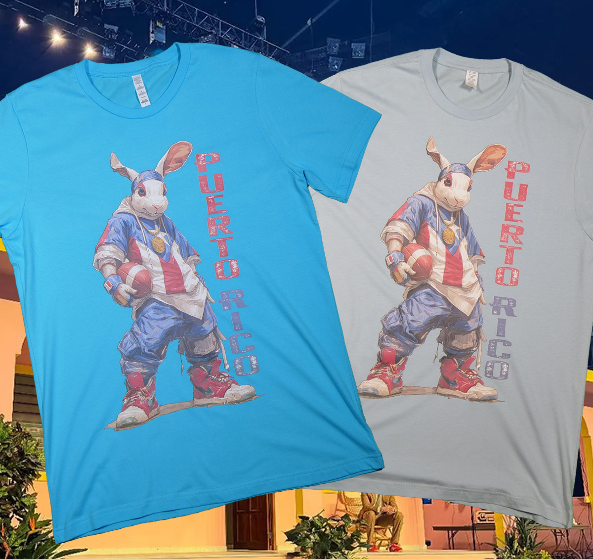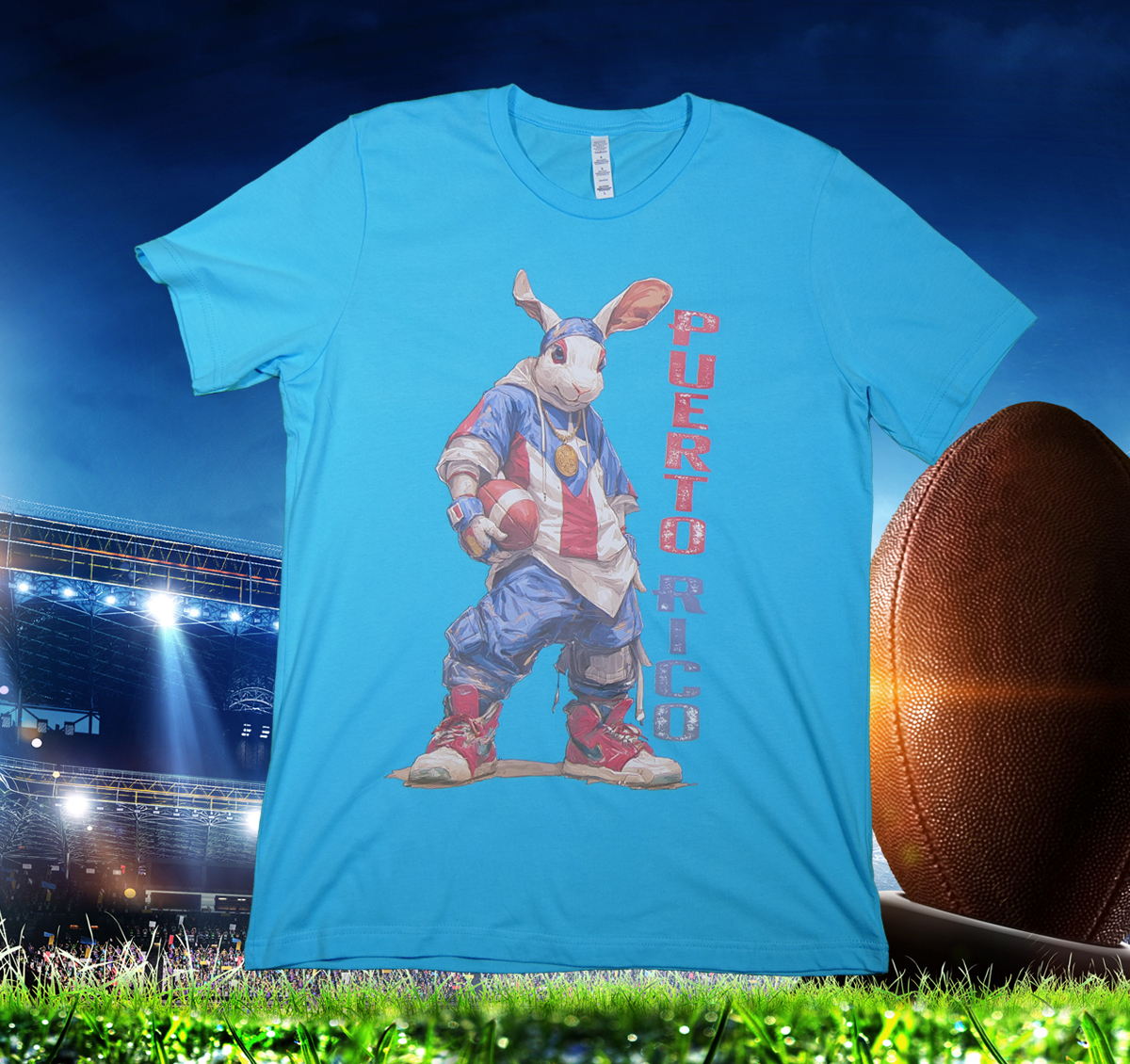 Puerto Rico meets hip-hop energy and football. This graphic tee features a hip-hop–inspired bunny geared up with a football and anchored by bold Puerto Rico lettering, made to rep with pride on game day or every day.